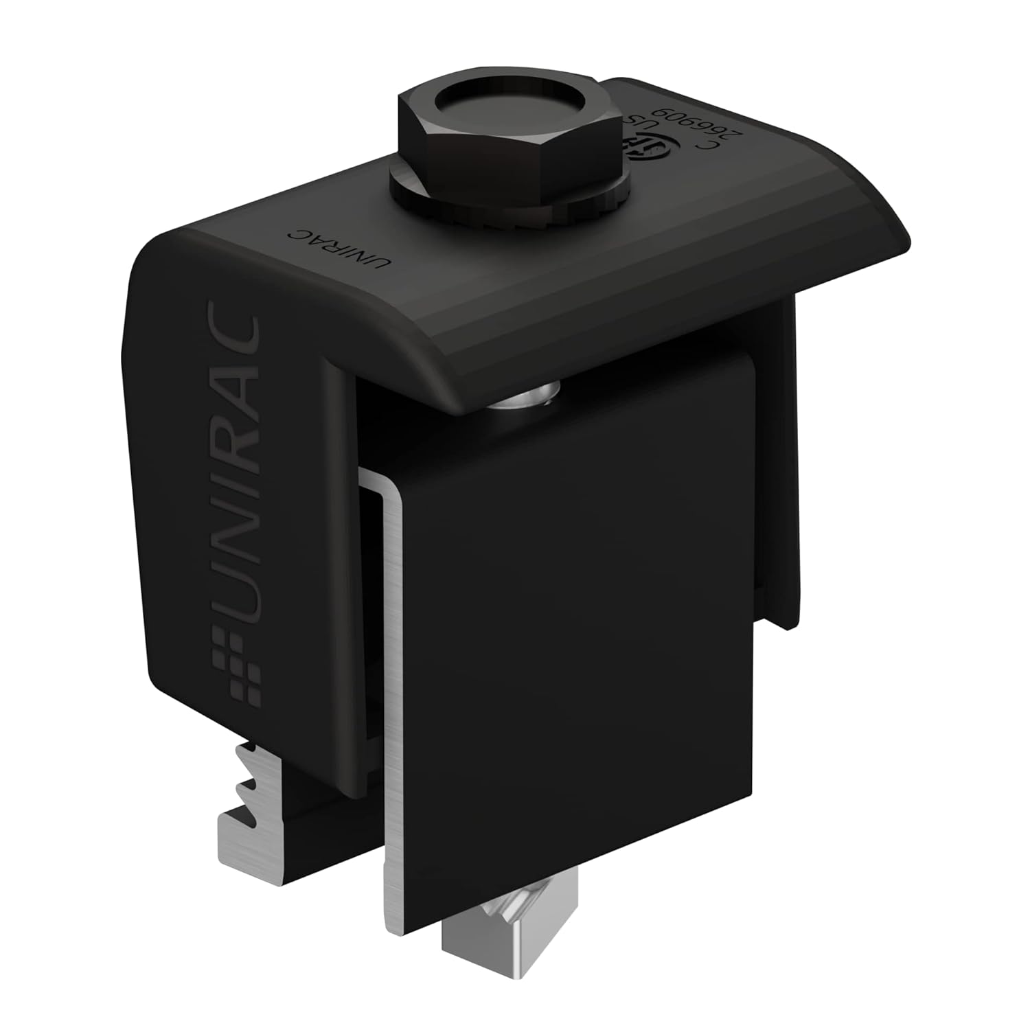 The Unirac 302050D SOLARMOUNT Universal Aesthetic Fastener End Clamp (Dark Finish) is a high-quality, preassembled component designed for the trusted SOLARMOUNT rail-based racking system, widely used in residential and commercial pitched-roof solar installations.